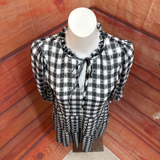 Adrianna Papell Dot Jacquard Ruffle Neck Top