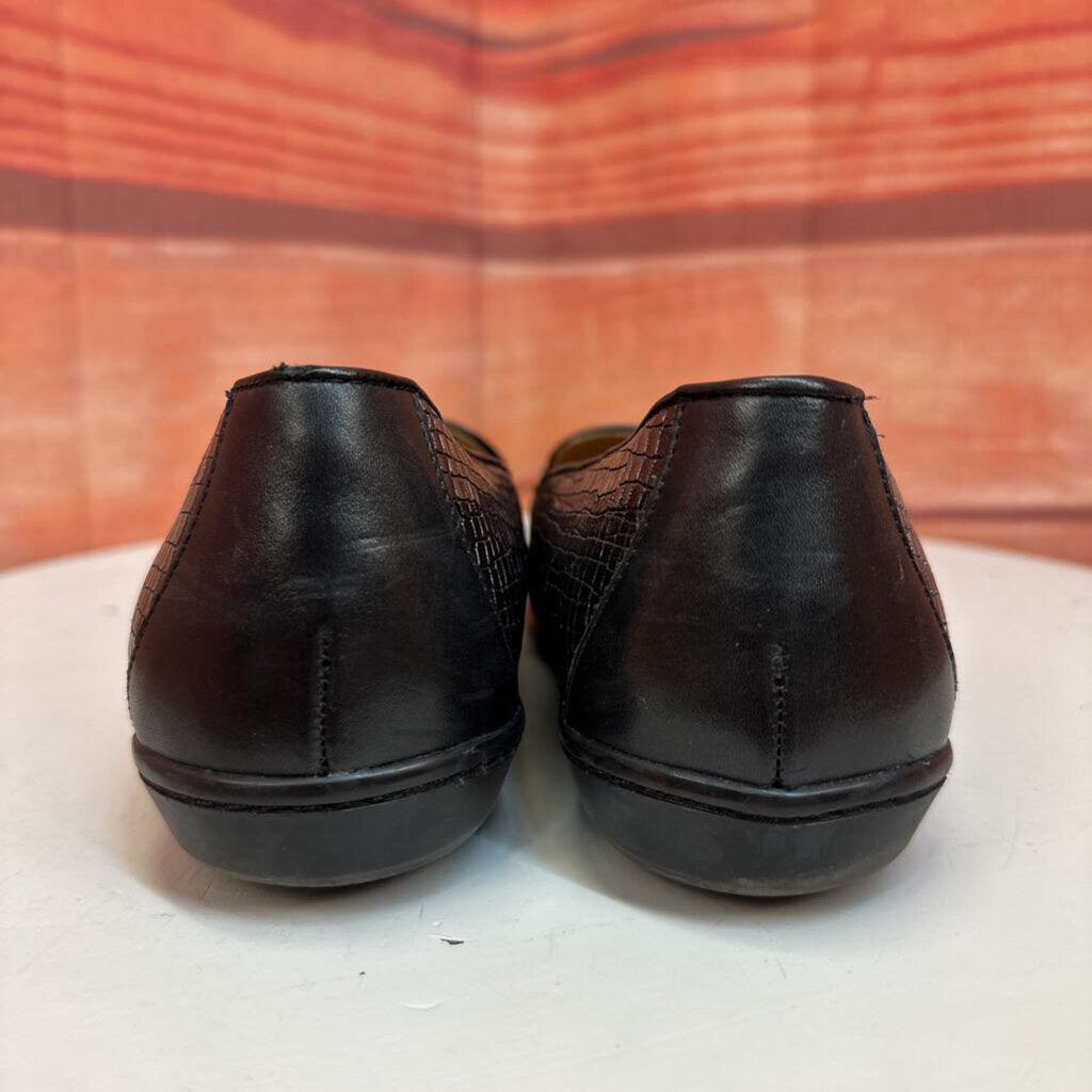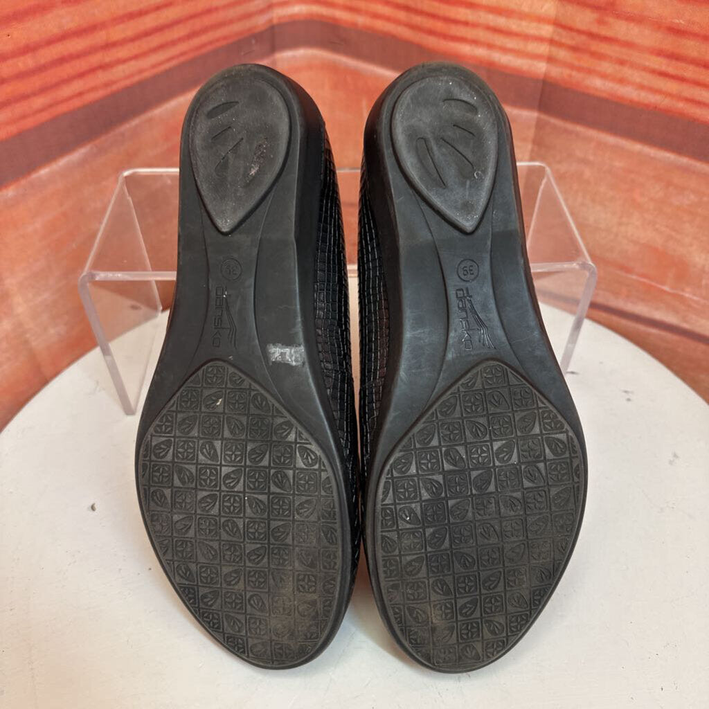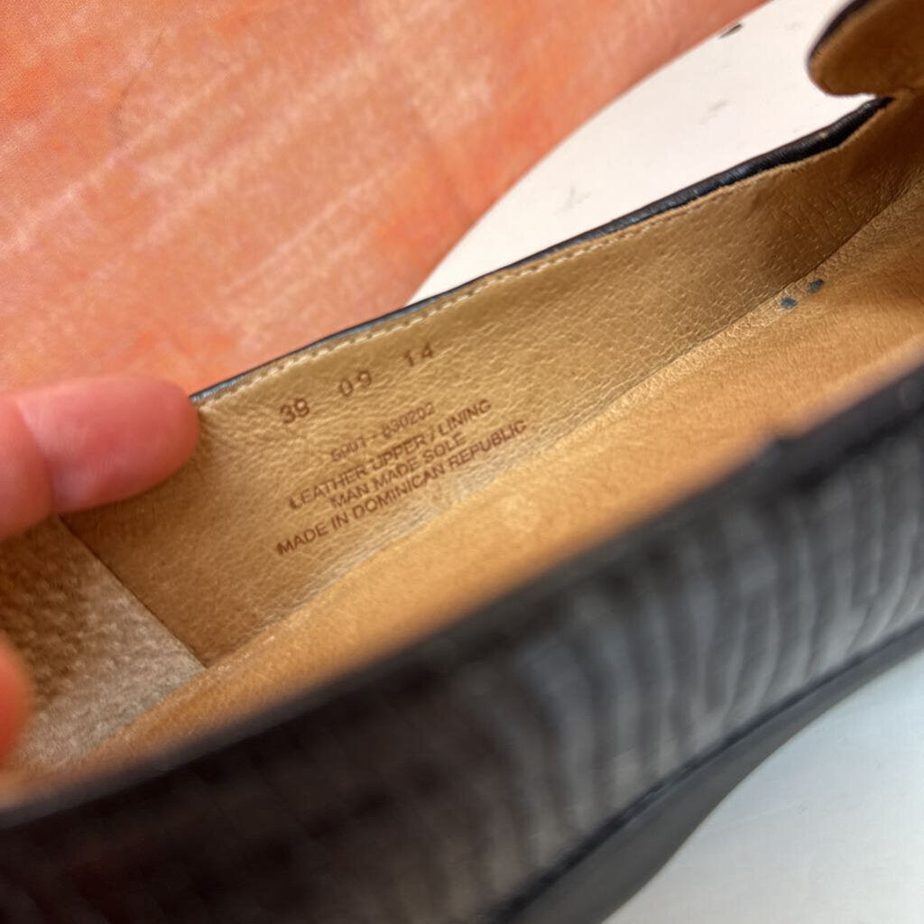 Black Flat Shoes with Crocodile Texture
