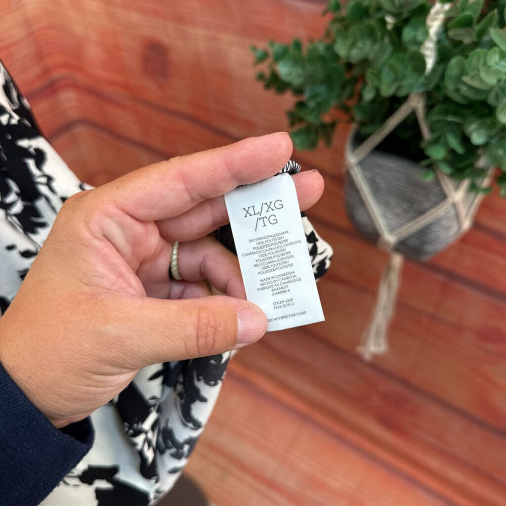 Stylish Cabi dress featuring a contemporary black and white pattern. Ideal for casual or semi-formal occasions.