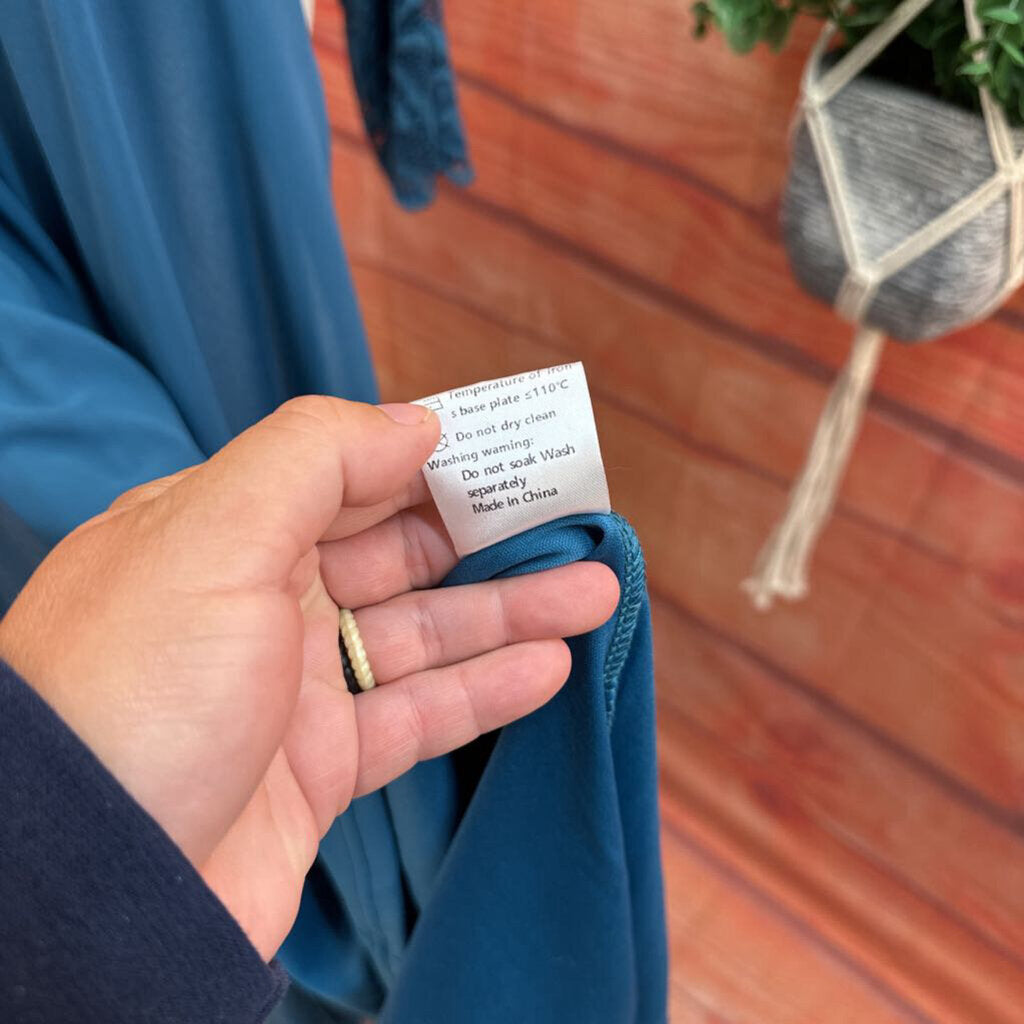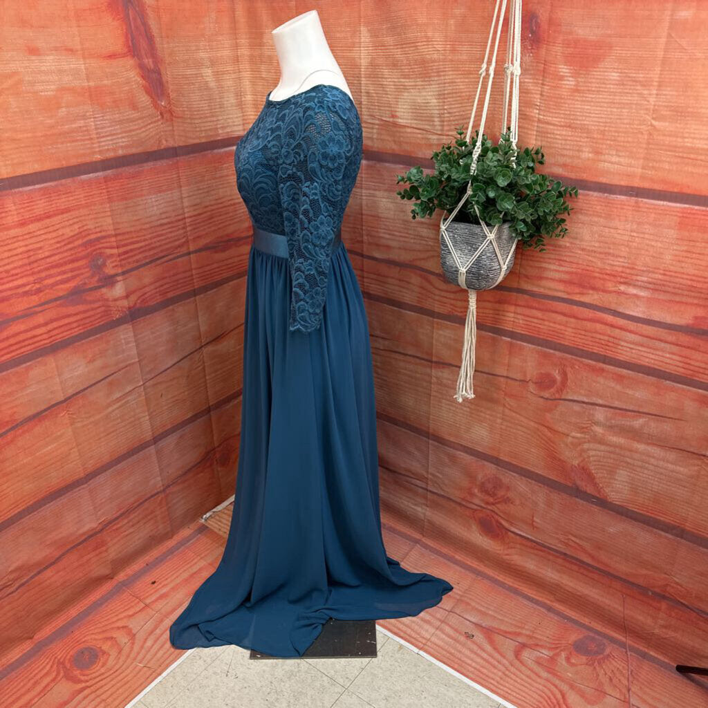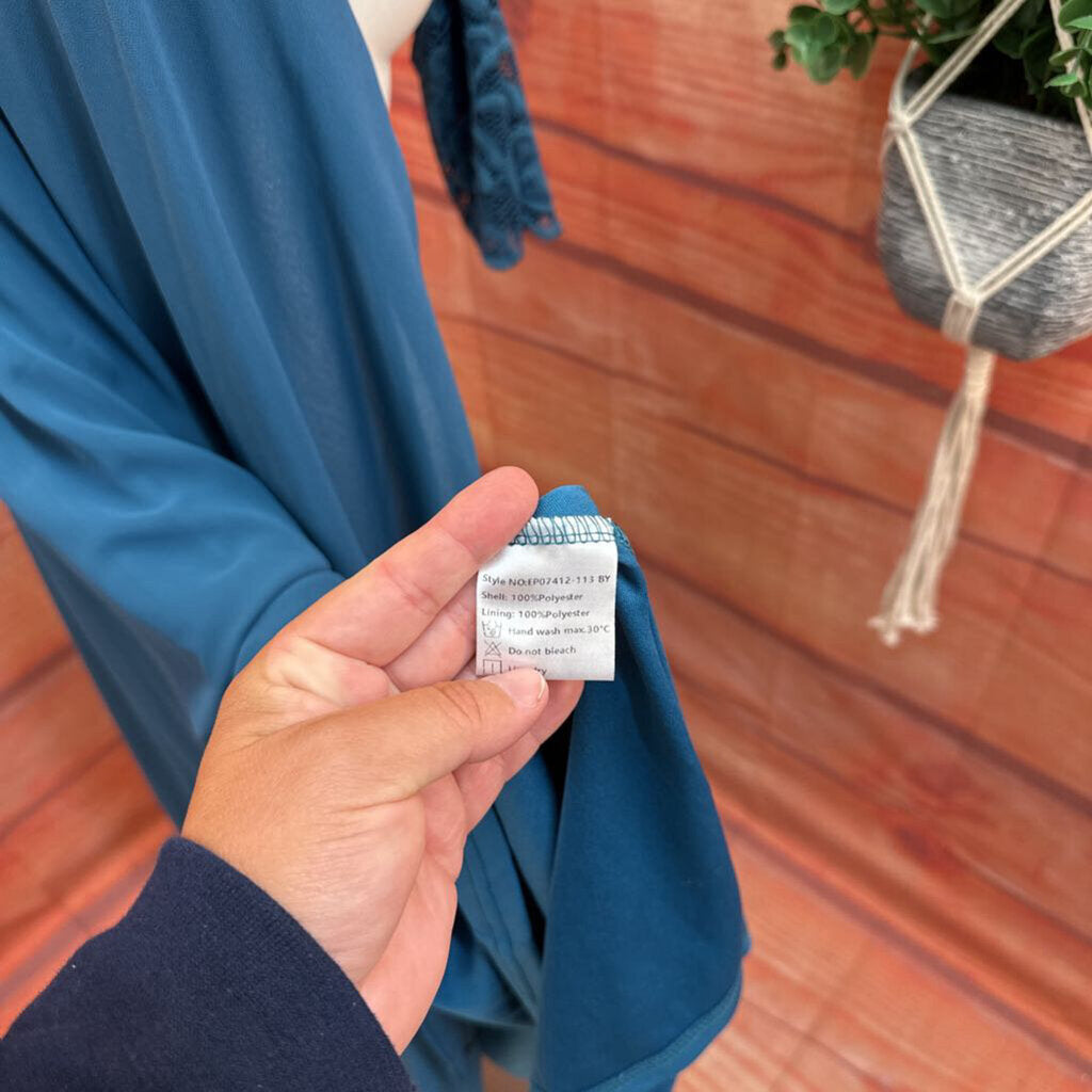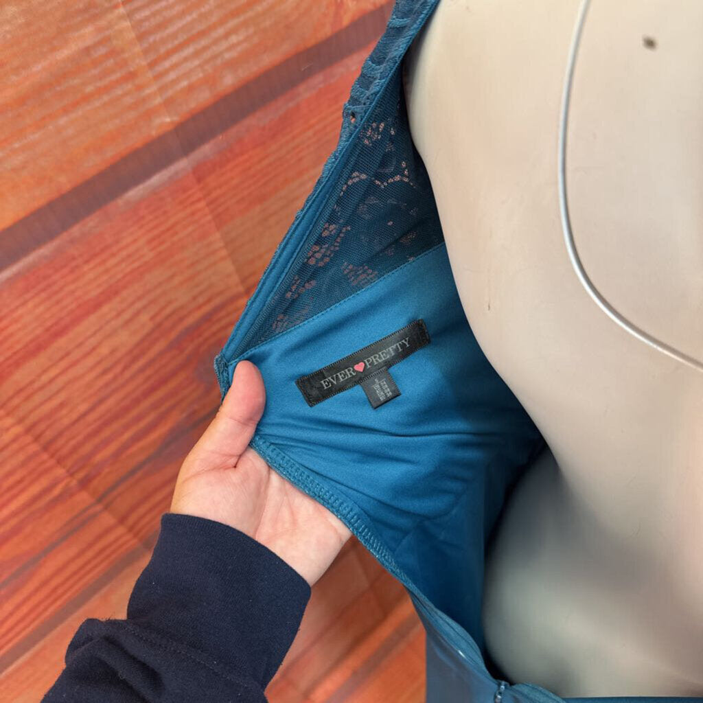 A beautiful teal lace dress by Ever Pretty, perfect for special occasions. Features a delicate lace overlay and flowing skirt. Size small, in good condition.