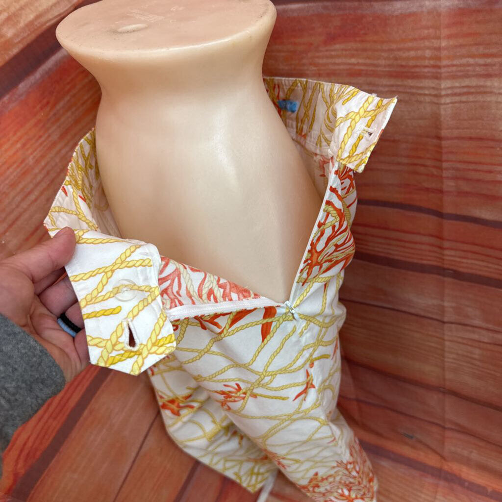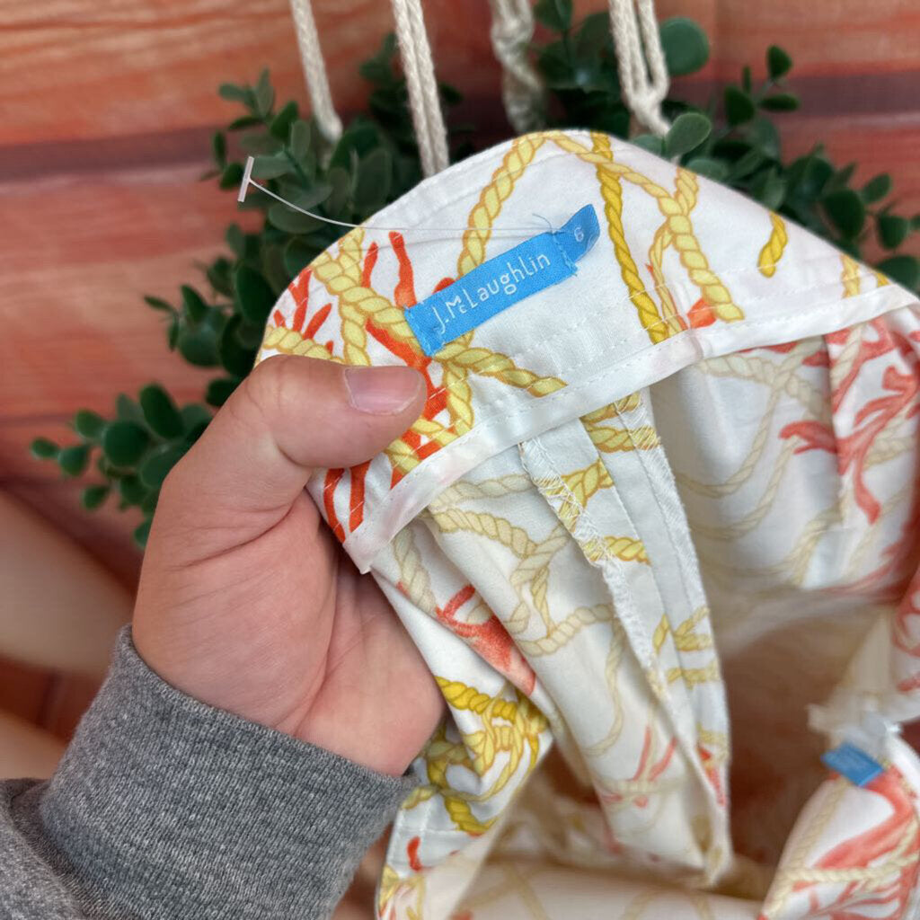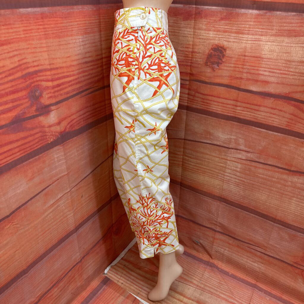 Stylish coral print pants by J.McLaughlin featuring a vibrant design perfect for casual wear. Ideal for warm weather outings. The waist measures 30 inches around the rise is 10 inches high. The inseam is 23 inches long.