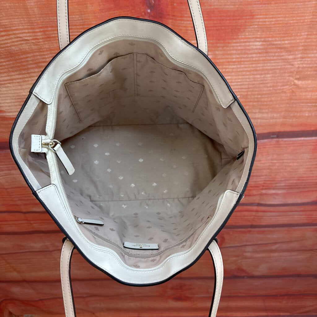 Stylish Kate Spade New York tote bag, perfect for everyday use. Features a sleek design in white with light pink accents. Spacious interior and durable construction make it a great accessory for any woman's wardrobe.