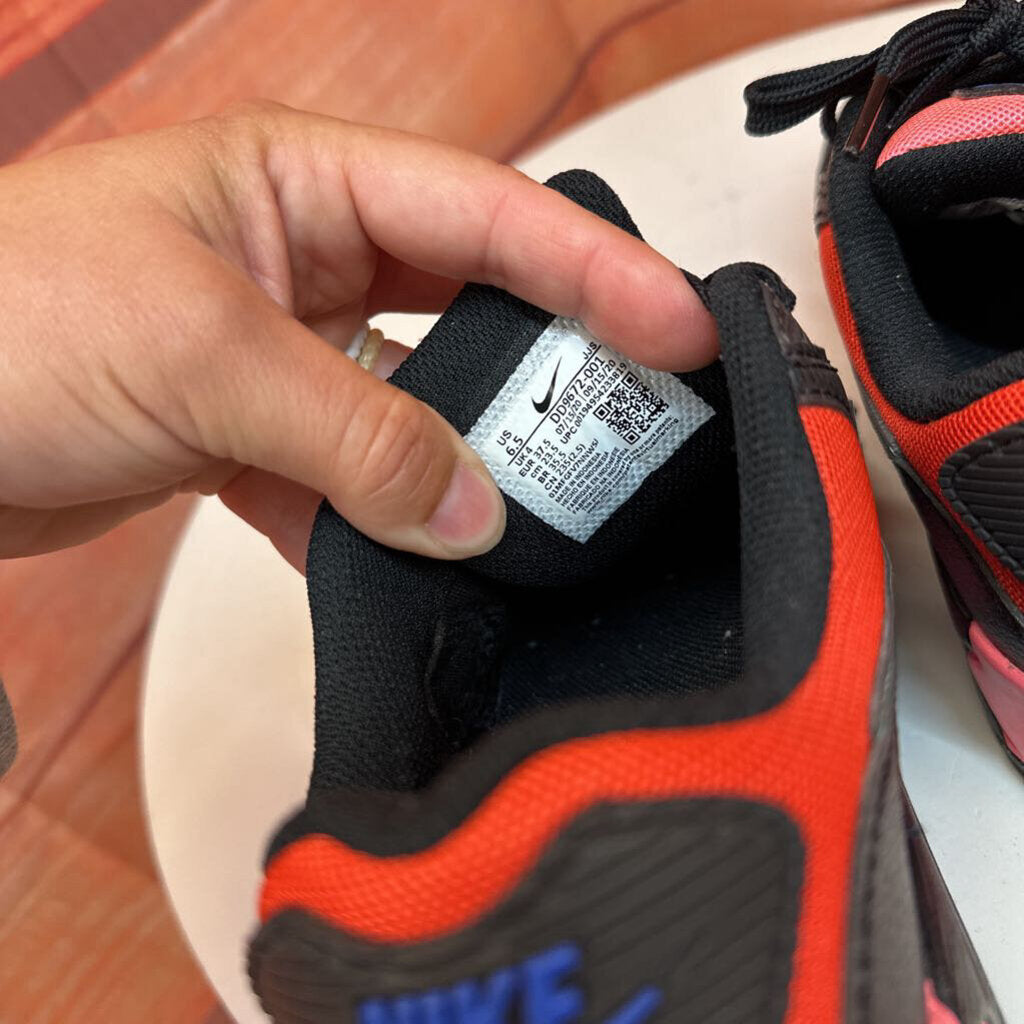 Stylish women's Nike Air Max 90 sneakers in black with pink and blue accents, perfect for casual wear or athletic activities. Lightly used, great condition.