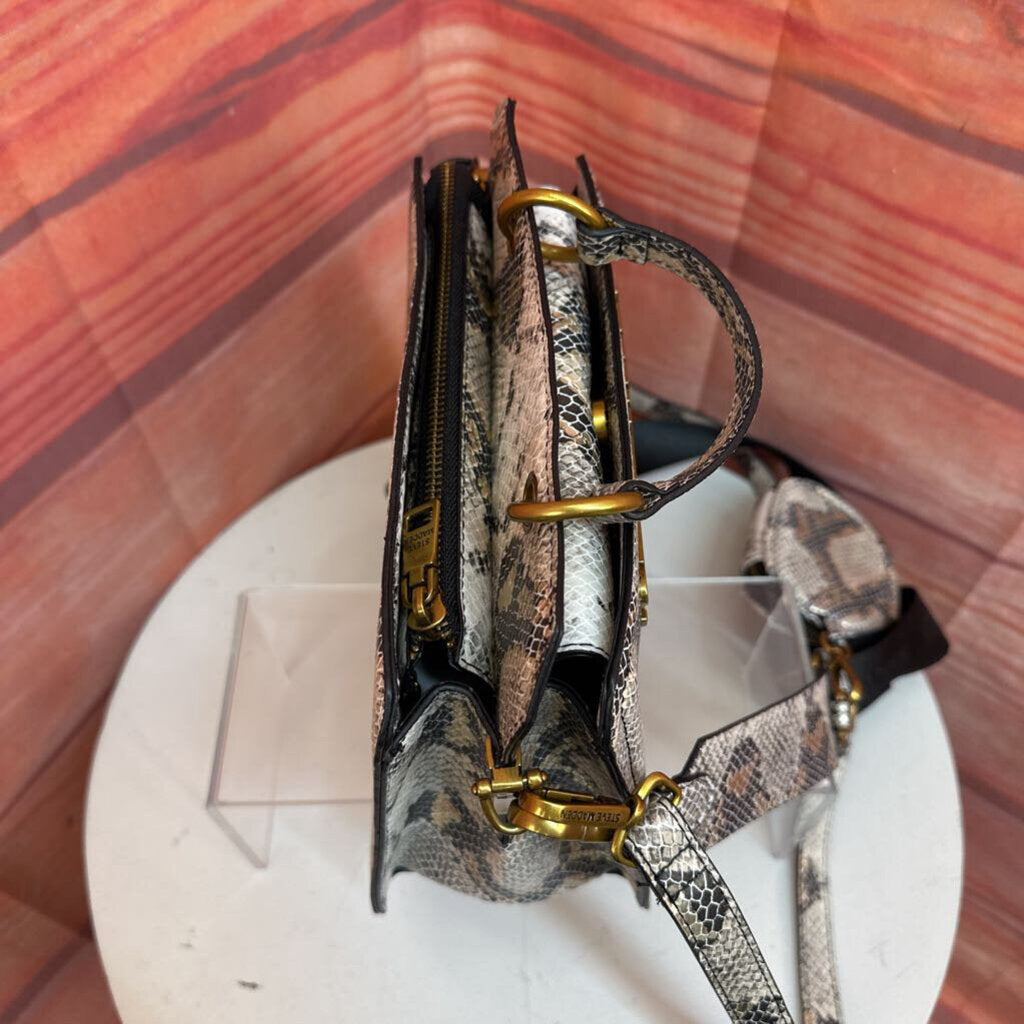 Stylish Steve Madden handbag featuring a trendy snakeskin print, perfect for adding a chic touch to any outfit.