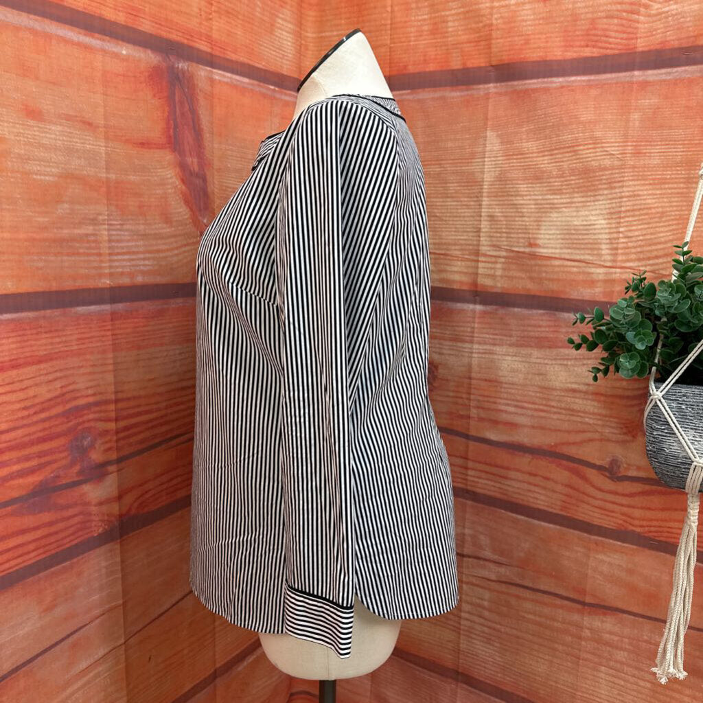 Stylish black and white striped long sleeve top from Talbots, perfect for casual or office wear. Features a classic fit and comfortable fabric.