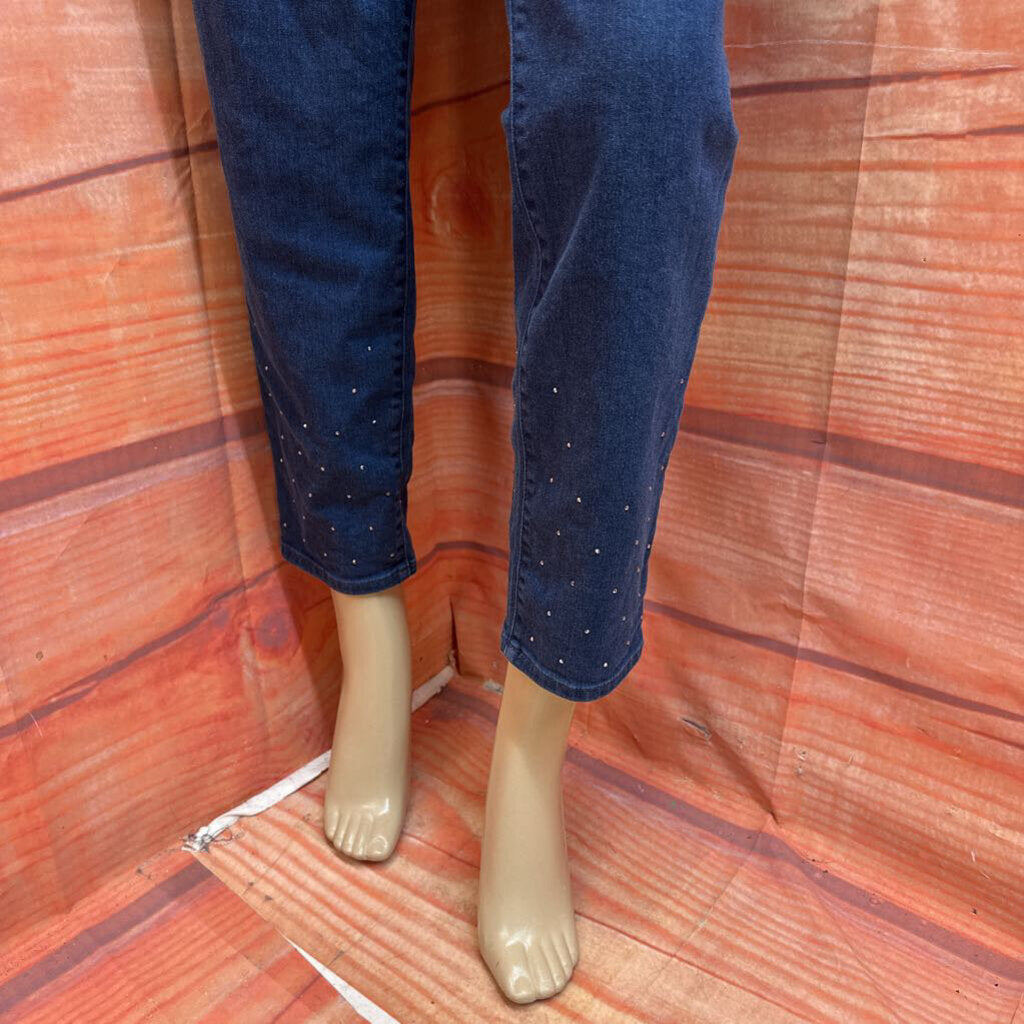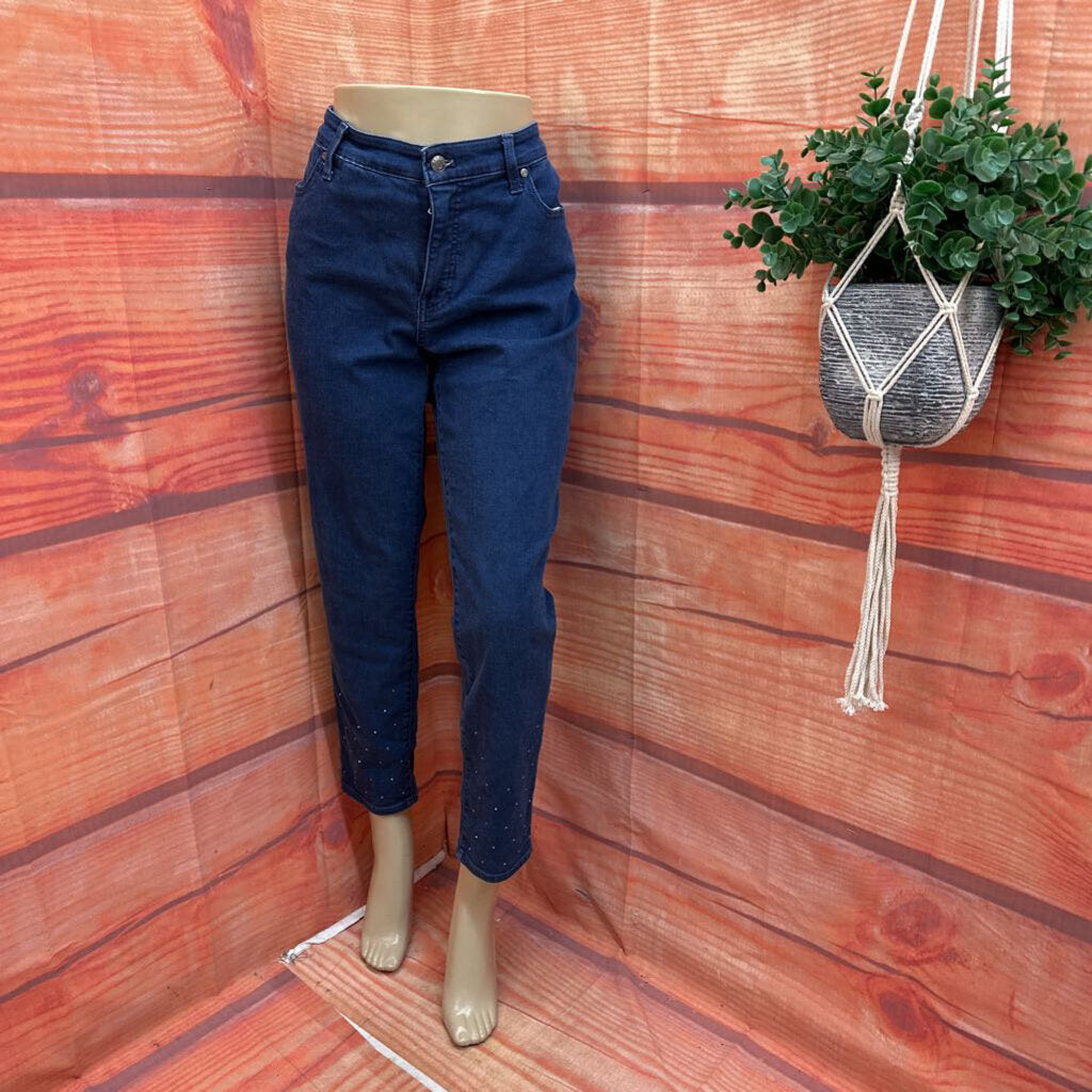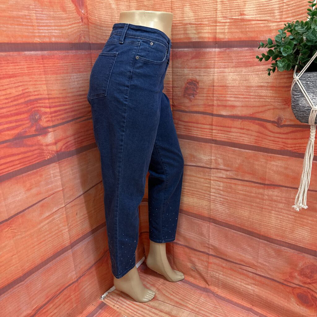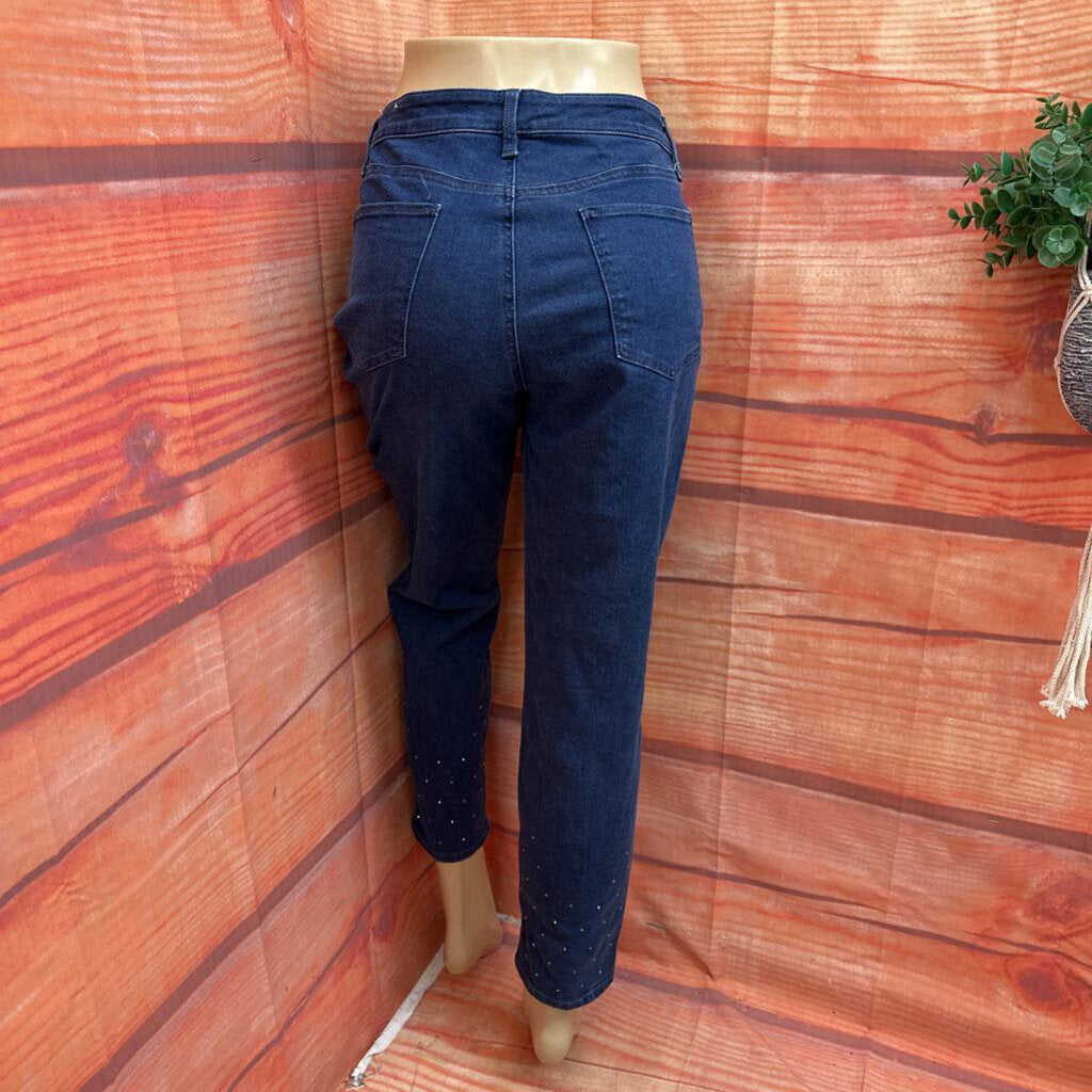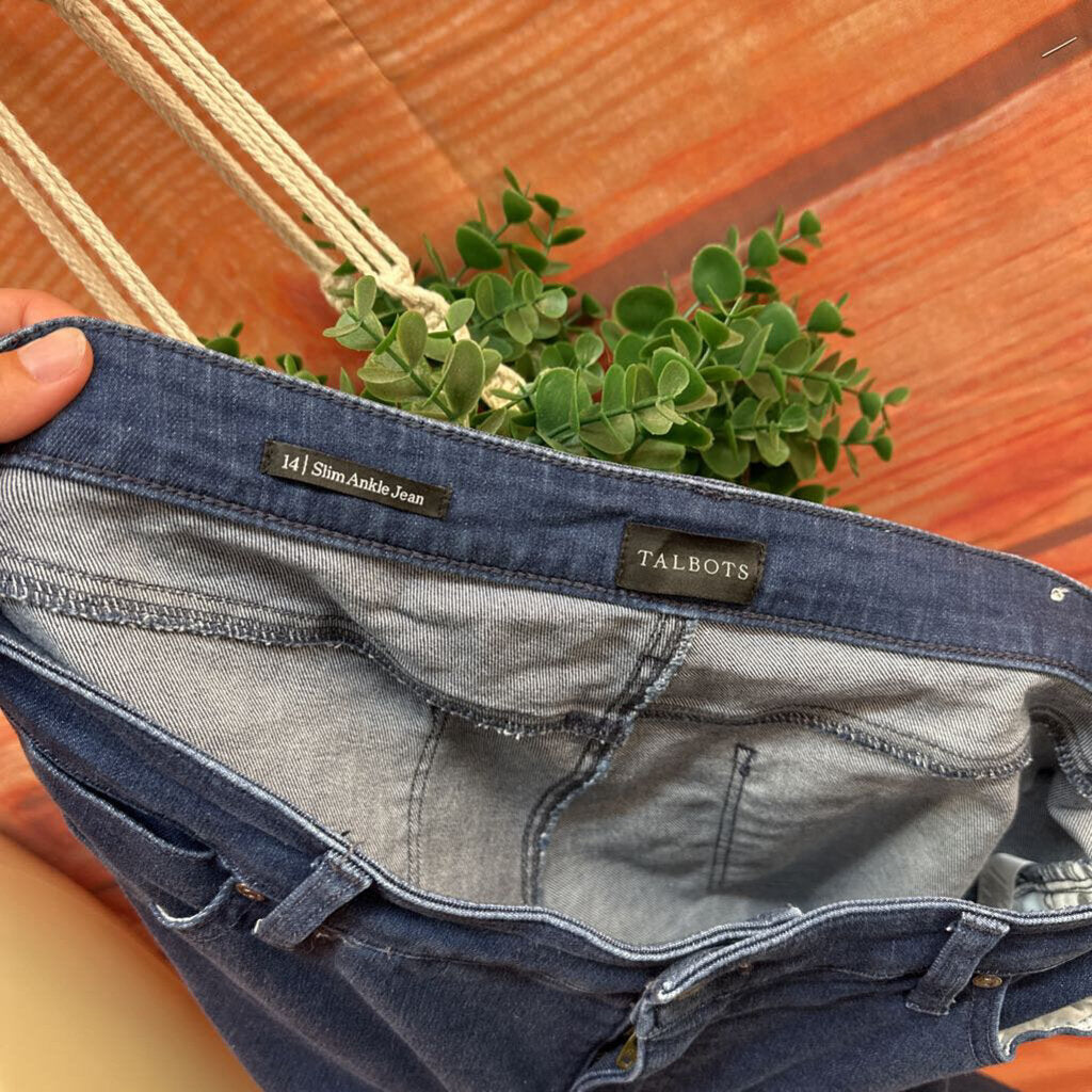 Stylish Talbots women's slim ankle jeans in dark blue, size 14, perfect for casual outings or office wear. Features a comfortable fit and elegant design.