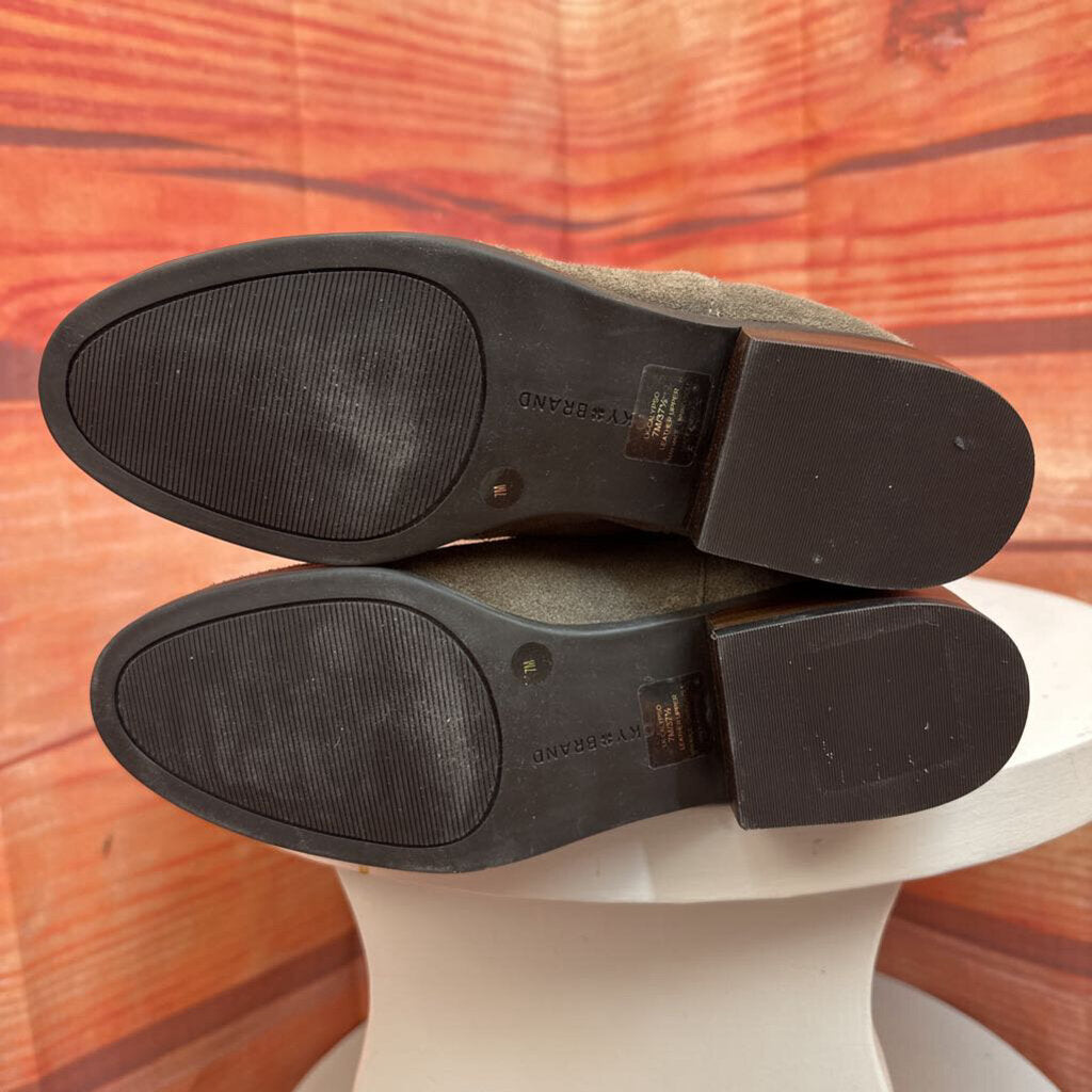 Stylish taupe suede knee-high boots by Lucky Brand, perfect for adding a touch of elegance to any outfit.