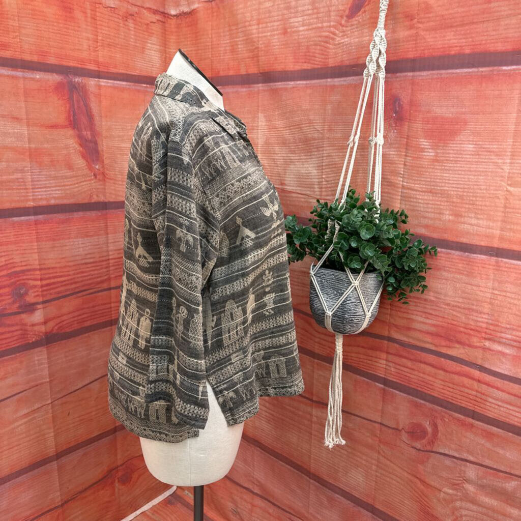VINTAGE CHICOS TAN PATTERN JACKET SIZE 2 (L/12)