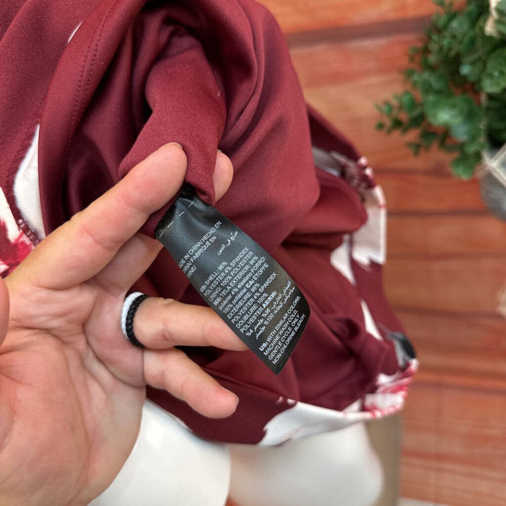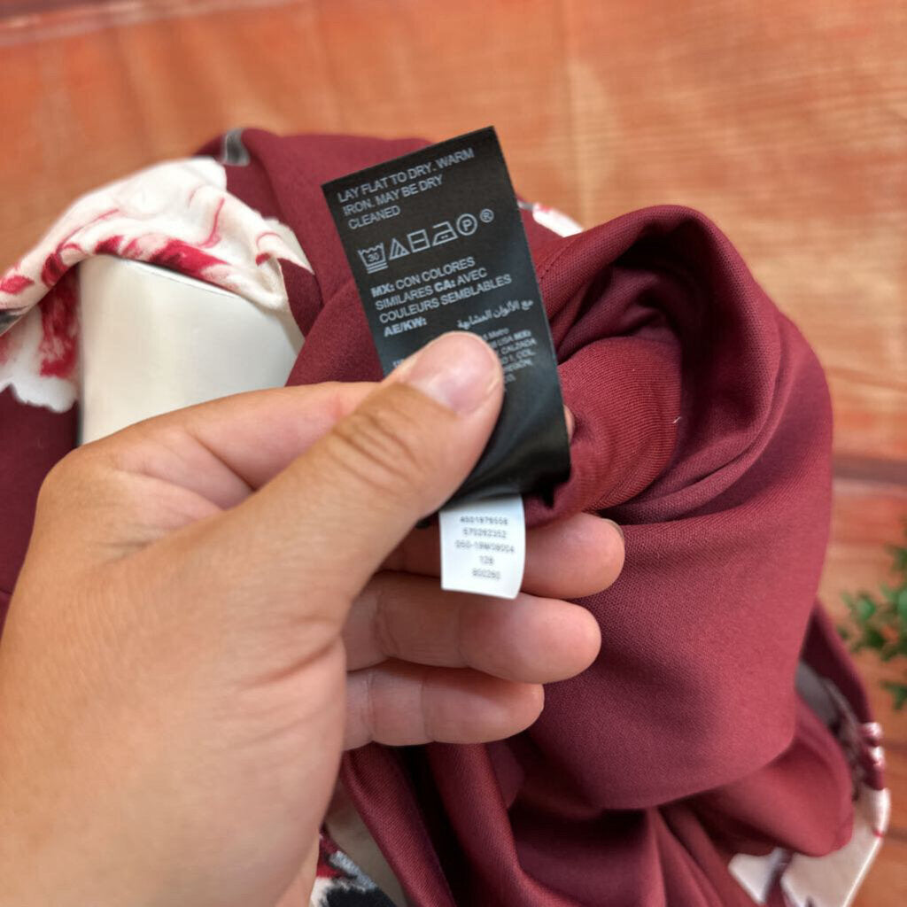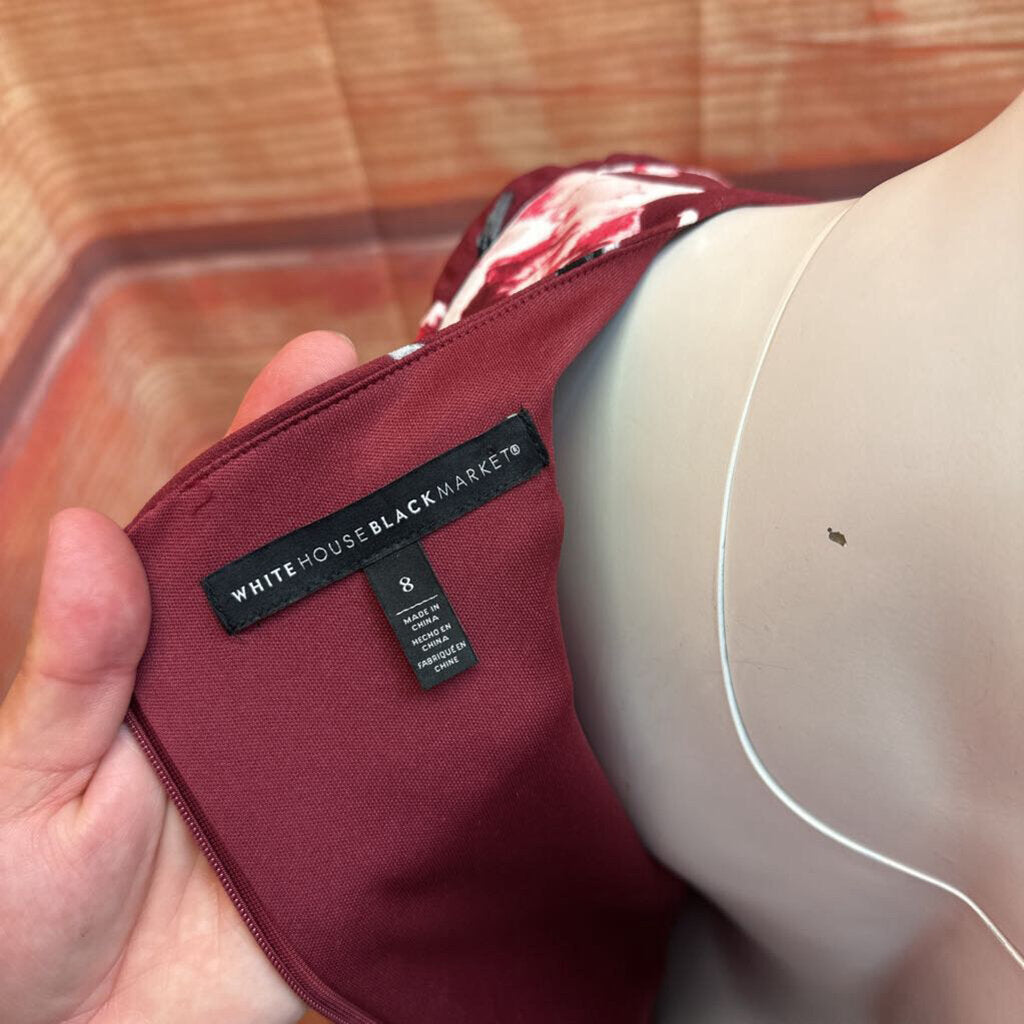 Elegant burgundy dress with floral design, perfect for casual or formal occasions.